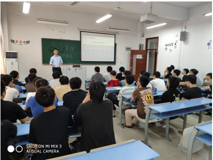 9月26日下午,浙江吉利控股集团有限公司人才经营中心技能管理部校企合作办主任朱斌麟在实训楼北412教室对即将进入顶岗实习的17级汽电班学生进行企业宣讲。本次宣讲主要分四个内容:一、吉利汽车集团的发展历程及文化;二、整车制造四大工艺;三、吉利汽车集团个人晋升通道、工资福利;四、如何规划选择自己人生道路。