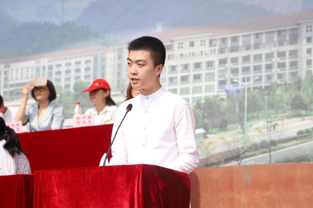 会计系16级学生臧浩全作为毕业生代表发言。他回顾了与长征的相遇、相知,总结了三年大学生活的收获,表达了对母校的感谢,对师友的祝福,倡议毕业生们在以后的人生道路中,带着理想与信念,怀抱着“大鹏一日同风起,扶摇直上九万里”的彭拜激情,去迎接新的机遇与挑战。