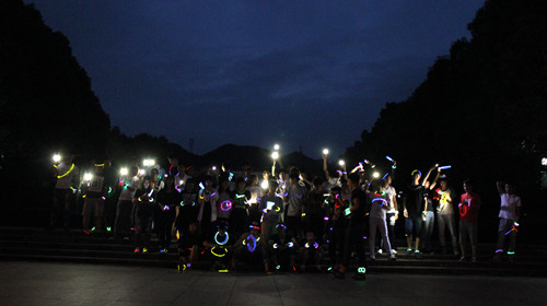 学生们用荧光棒排成的“建工”图案学生们用荧光棒排成的“建工”图案