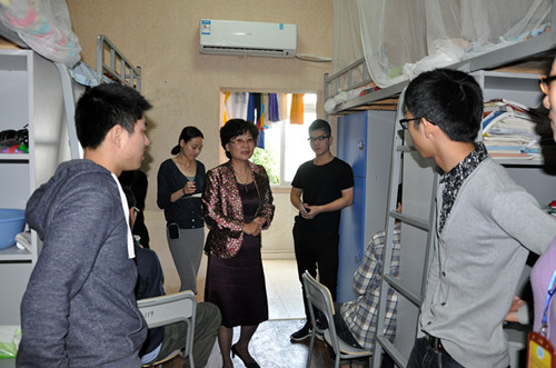 检查组长走访学生寝室