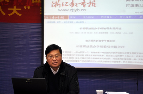 教育指导委员会主任、正院级巡视员洪永铿作题为《深入学习贯彻十八大精神 创办高水平有特色的民办高校》专题辅导报告