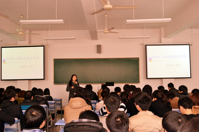 学院高度重视大学生的安全健康成长,2012年3月21日下午,学院保卫处、学生处和基础部心理咨询中心组织承办了面向全院各系书记、辅导员、专兼职班主任、和大一、大二安全信息员、班长参加的“大学生心理危机干预讲座”。
