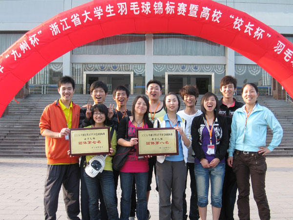5月1日—3日,2009年浙江省大学生羽毛球锦标赛在杭州师范大学钱江学院体育馆隆重举行,我院羽毛球队在刘东领队、曹桂霞教练的带领下,不畏强手,顽强拼搏,取得男子团体第八名、女子团体第七名,男双第四名、女单第五名的优异成绩。