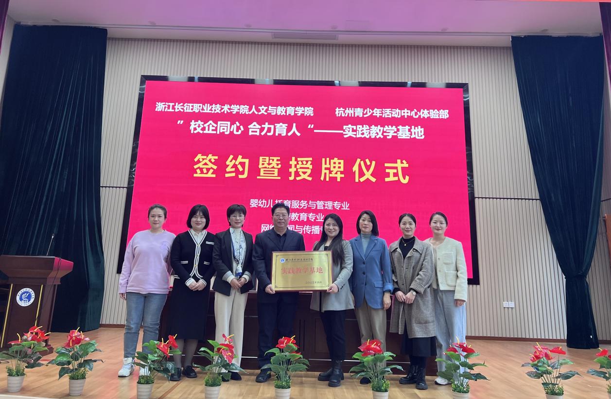 为进一步提高浙江长征职业技术学院婴幼儿托育服务与管理专业、学前教育、网络新闻与传播专业人才培养质量,推动职业高等教育与实训企业协同发展的探索实践、打造“校企联合育人”的人才培养路径、提升学生综合教育教学实践能力。3月29日下午,浙江长征职业技术学院人文与教育学院与杭州青少年活动中心体验部签约共建校企合作实践基地,基地签约授牌仪式在浙江长征职业技术学院第二报告厅隆重举行。