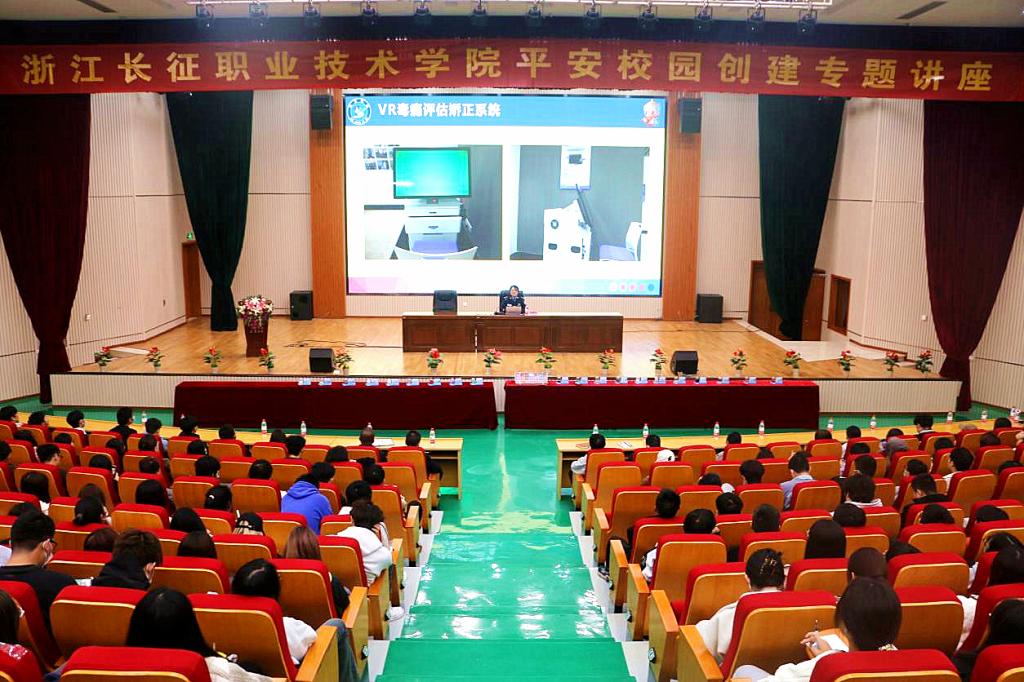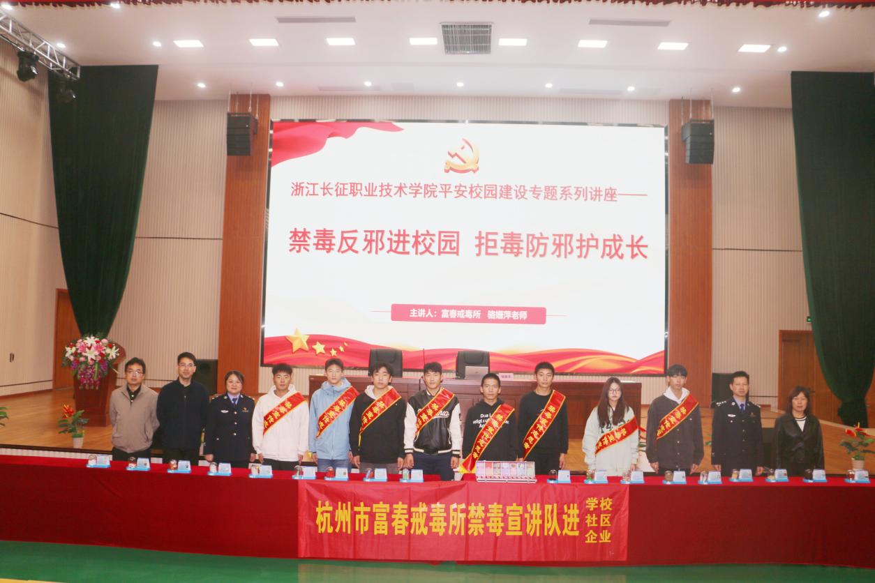 为学习贯彻习近平新时代中国特色社会主义思想主题教育的总要求,增强师生的禁毒、反邪教的意识和能力,提升师生的法治修养,筑牢学校安全防线,11月10日,学校邀请杭州市富春强制隔离戒毒所第三大队副大队长骆姗萍在学校第一报告厅开展了“禁毒反邪进校园 拒毒防邪护成长”的毒品知识教育专题讲座。杭州市富春强制隔离戒毒所戒毒矫治科科长蔡霆,学校学生处处长章剑飞、副处长郑鲜、翁文亮,保卫处处长陈建云,团委副书记慕莎,师生代表共500余人参加了此次讲座。