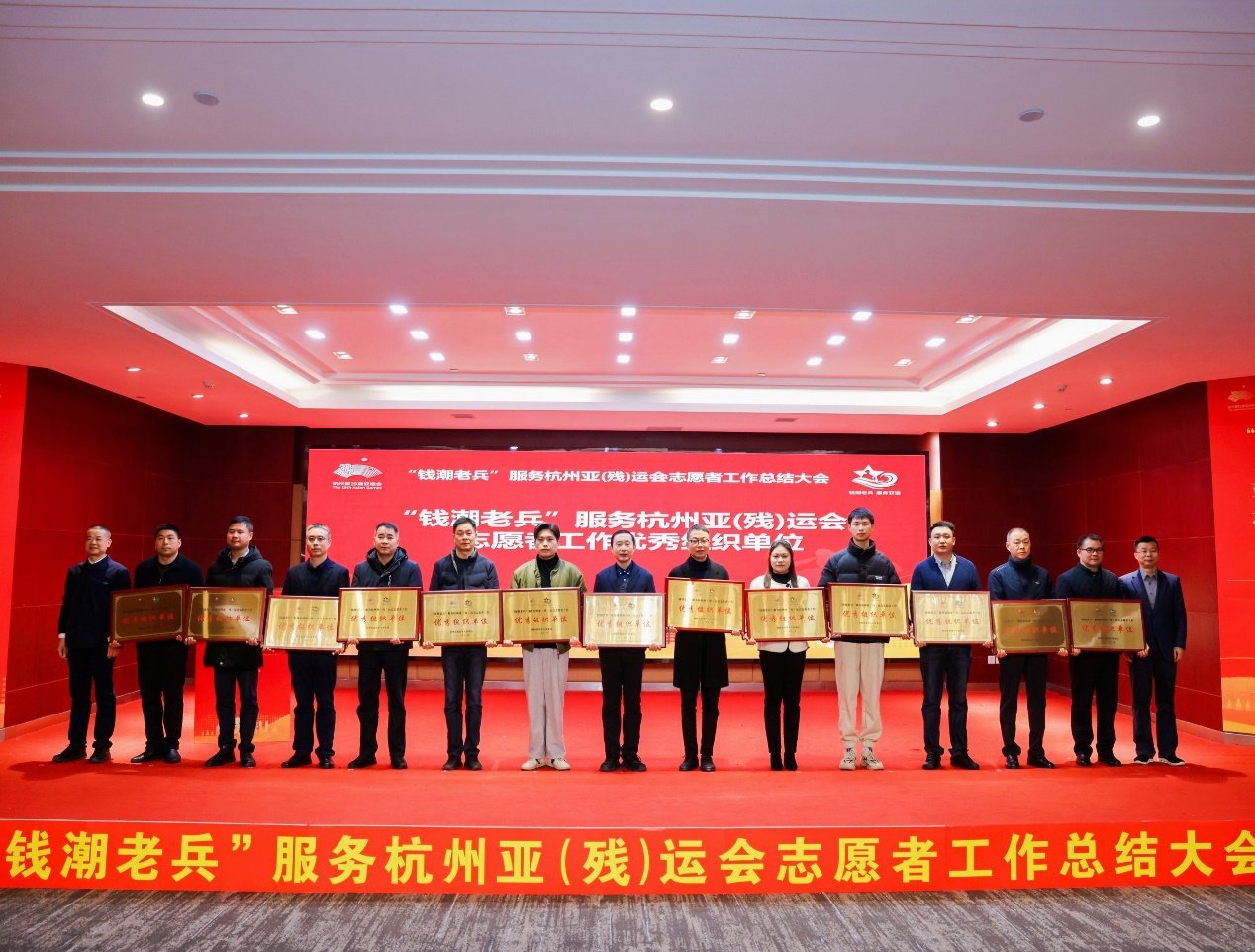 杭州亚(残)运会期间,“小青荷”里的“橄榄绿”很亮眼。日前,杭州市“钱潮老兵”服务亚(残)运会志愿者工作总结大会在崇军大厦召开,会议总结回顾了今年“钱潮老兵”服务杭州亚(残)运会志愿者工作,对成绩突出集体和个人进行颁奖。我校被授予“钱潮老兵”服务杭州亚(残)运会志愿者工作“优秀组织单位”,学生工作处副处长翁文亮荣获“成绩突出工作者”,何海涛、朱成峰、樊智瑄、谢怜恤、马森森等五位退伍士兵大学生荣获“成绩突出志愿者”。
