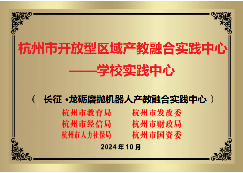 近日,杭州市教育局等六部门公布了第一批市域产教联合体、行业产教融合共同体和开放型区域产教融合实践中心,我校“长征·龙砺磨抛机器人产教融合实践中心”成功入选市级开放型区域产教融合实践中心,并于11月9日在杭州市属高校第五届科技成果推介会上举行了授牌仪式。