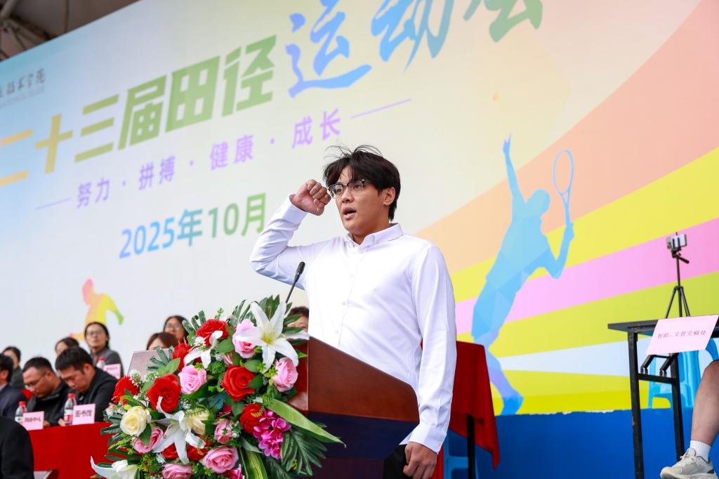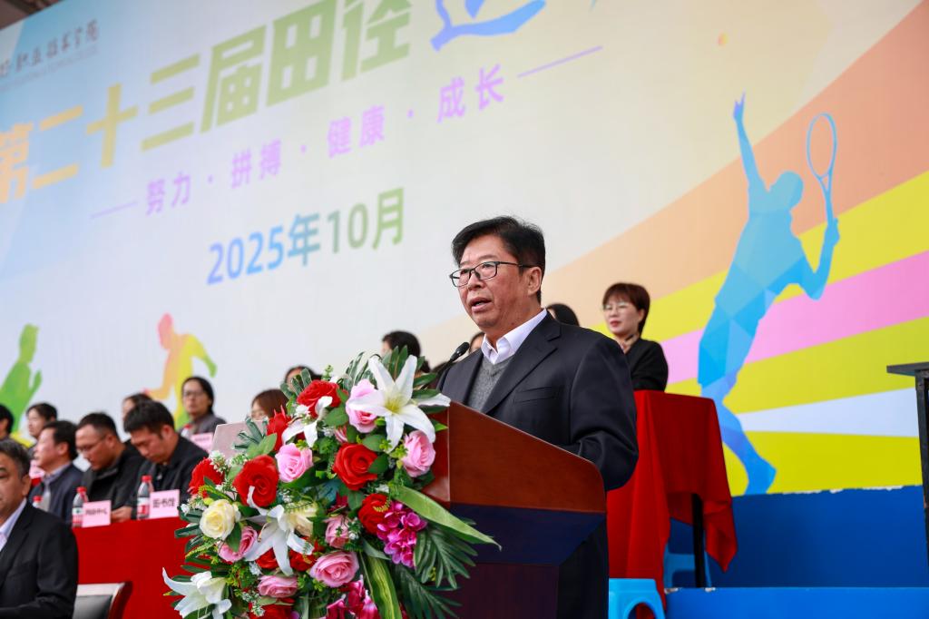 副校长杜宝山致开幕词。他代表学校,对运动会的顺利召开表示热烈祝贺。他表示,体育运动不仅能强健学生体魄,更能培育爱国主义、集体主义精神,实现“以体育智、以体育心”的育人目标。希望全体运动员尊重对手、文明参赛,赛出水平、赛出风格。