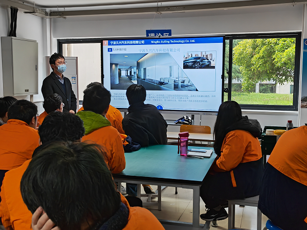 3月28日,智能技术学院邀请宁波久兴汽车科技有限公司技术总监吴江华来我校开展专题讲座,20级汽车电子技术专业班全体学生认真聆听了讲座。