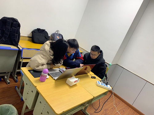 寒假伊始,三位优秀毕业生便开始对19级的巩婉婷同学和17级的余雅恬、陈燕清同学开展了为期15天的理论培训及实操指导,采用三个师傅联合授课,及集体办公的模式,帮助参训学生克服学习的高原期。2020年2月初,受到新冠疫情的影响,他们中止了线下指导,开始利用QQ和微信平台进行线上指导,对学妹们的学习进度追踪、跟进。另外,王益明同学还走进网络课堂指导18级商英1班的学生注册Wish平台,以解决同学们在Wish运营中碰到的各种技术问题。