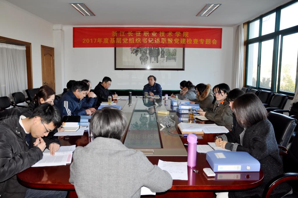 为深入学习贯彻党的十九大精神和全国、全省高校思想政治会议精神,进一步落实全面从严治党要求,1月11日上午,浙江长征职业技术学院2017年度基层党组织书记述职暨党建检查专题会在行政楼第二会议室召开,学院党委成员出席会议,各基层党总支委员和支部书记参加会议,会议由学院党委书记、常务副院长王其军主持。