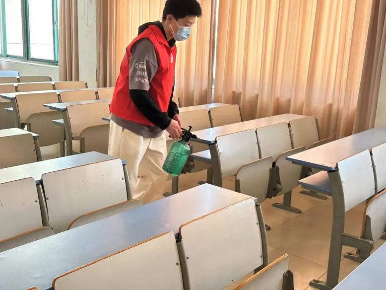 本次活动,志愿者们组织有序,分工明确,齐心协力,按照规范流程,深入到每栋教学楼,对每一间教室逐一进行全面清洁消毒,打开窗户通风换气。全体志愿者干劲十足,充分发扬了“不怕脏,不怕累”的奉献精神和雷锋精神,在忙碌而欢快的氛围中,让将流感病毒消灭在“萌芽期”。
