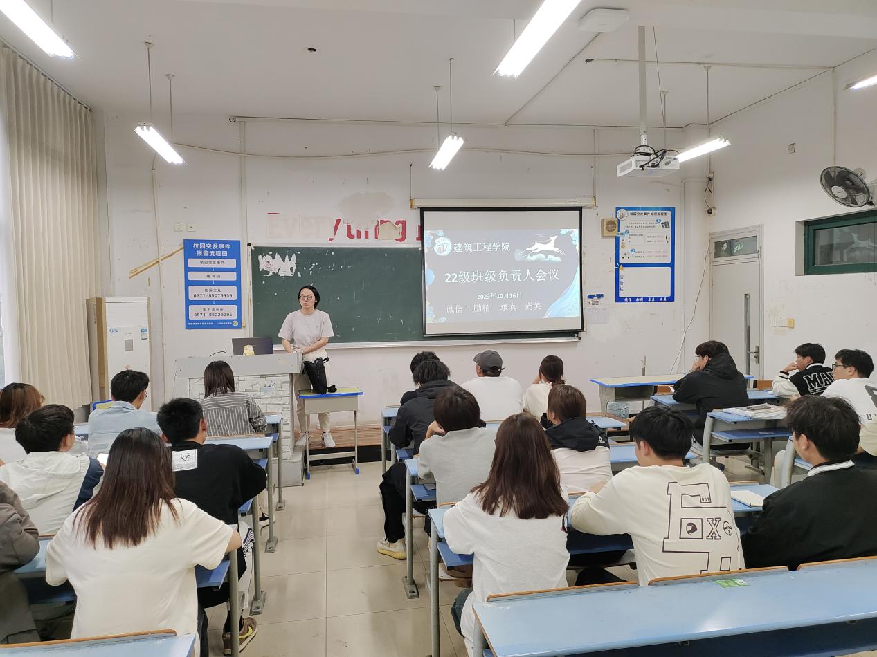 10月16日晚,建筑工程学院在第一教学楼1410室召开了2022级班级学生干部会议。会议由丁芳主持,学院党总支副书记陈敏洁及2022级各班学生干部参加。