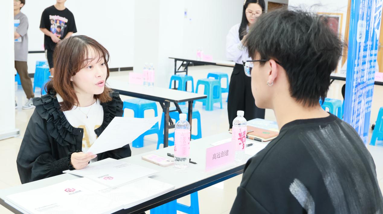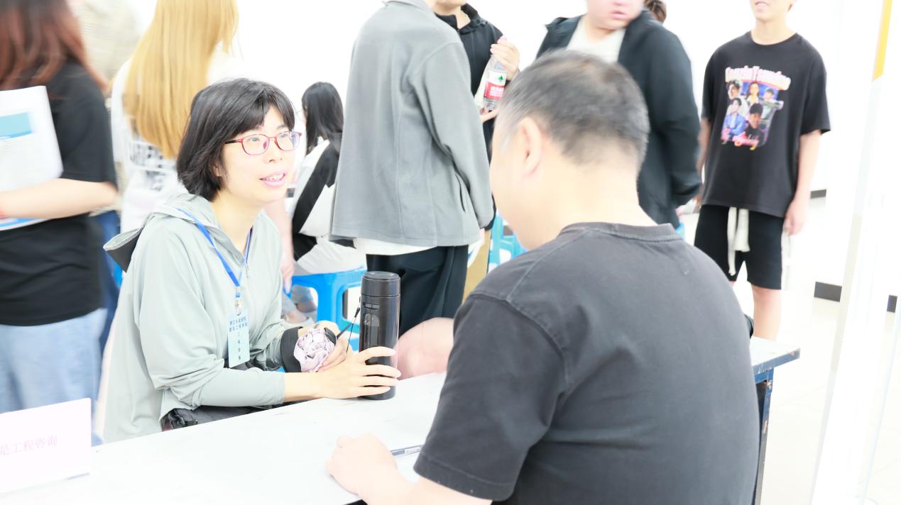 招聘会现场氛围火热,在校同学踊跃参与,大家积极了解有意向的企业,用人单位认真负责提供指导,双方就招聘岗位、暑期实习、工作内容、面试流程等问题展开了热切交流。