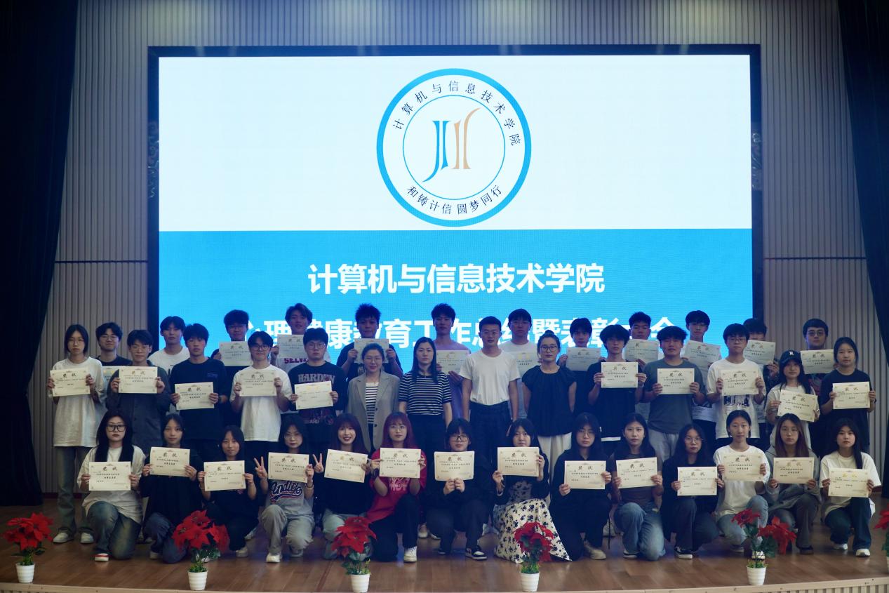 为进一步推动学院大学生心理健康教育工作,提升学生心理健康水平,营造关注心理、重视心理的校园氛围,计算机与信息技术学院近日在第二报告厅举办了心理健康教育工作总结暨表彰大会。计算机与信息技术学院党总支书记徐静、副书记刘帅、学工办副主任华春媛和全体辅导员老师以及来自各个班级的学生代表参加。会议由学院学工办副主任林美娜主持。