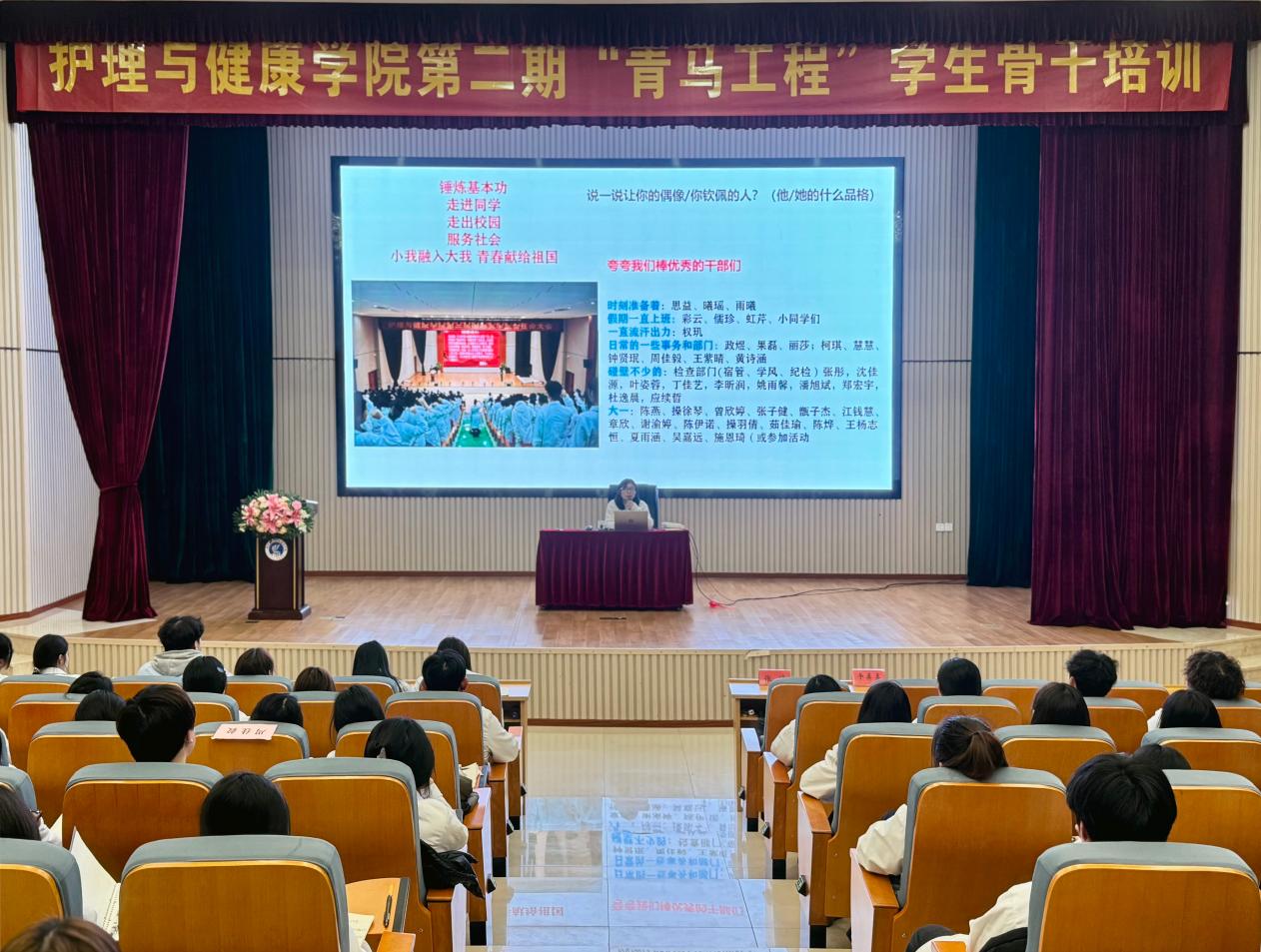 为进一步加强护理与健康学院团学干部队伍建设,提高团学干部的学习能力、实践能力与工作技能,深化团学干部的服务意识,2月26日,护理与健康学院在二号报告厅隆重举行第二期“青马工程”学生骨干培训开班仪式。护理与健康学院党总支书记张泱、学工办副主任李真真、刘瑾萌参加开幕式。开幕式由学院学生会执行主席黄曦瑶主持。