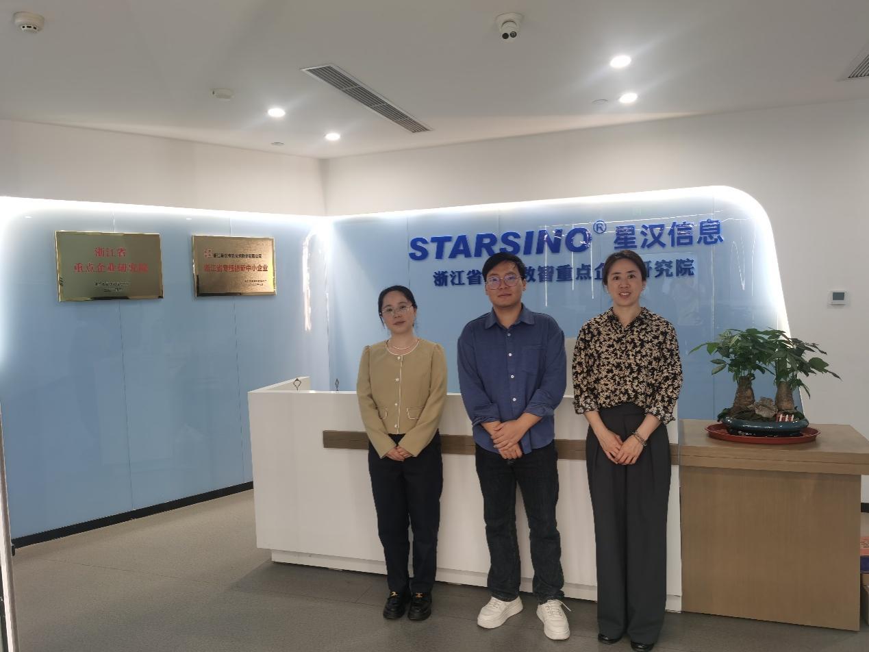 为深化产教融合,促进人才培养与市场需求精准对接,4月23日,管理学院张雅淋、胡述芬两位老师前往浙江星汉信息技术股份有限公司(以下简称:“星汉股份”)开展访企拓岗专项活动。星汉股份负责人周楠钧热情接待。