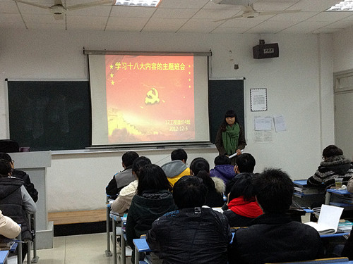 三、班主任逐班召开学习十八大精神专题班会。班会形式多样,内容丰富。通过班主任的精辟宣讲,学生骨干的专题发言,广大同学的热烈讨论,使十八大精神更加深入基层,深入人心。